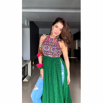 Why It Works: Eye-catching and unique, ideal for those seeking a standout navratri trending outfit.