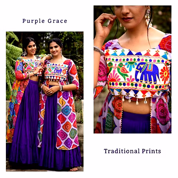 Why It Works: A modern twist on the classic chaniya choli kediyu for garba, perfect for fashion-forward dancers.