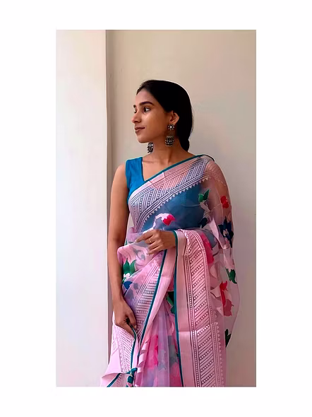 Dazzle in elegance with our Red Organza Saree, a perfect blend of tradition and modern style. Crafted with exquisite details for those special occasions.